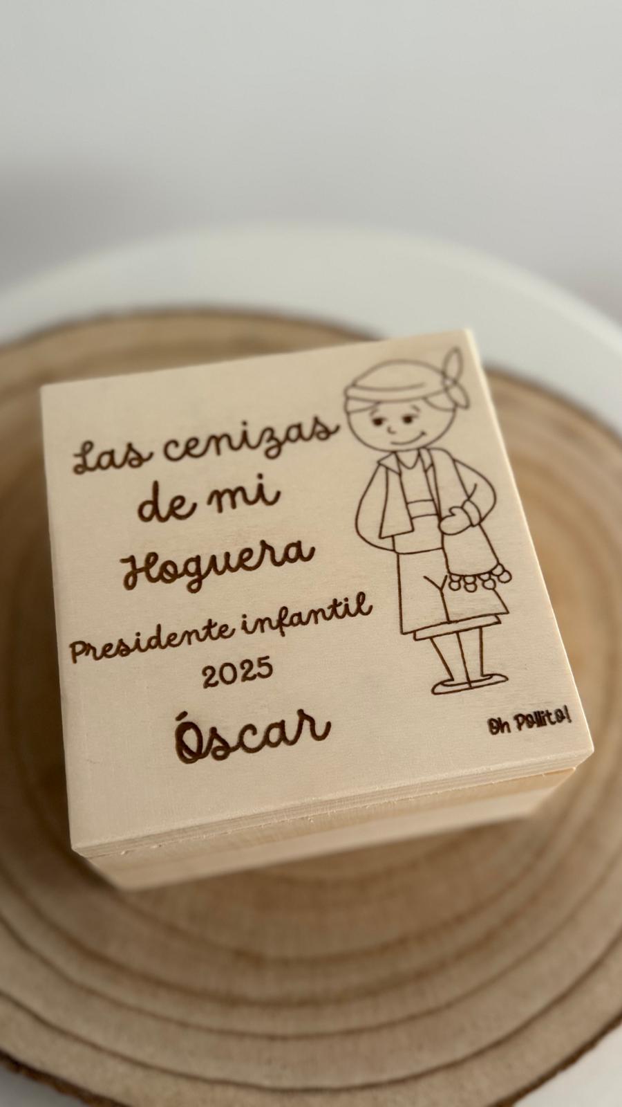 Caja de madera natural, para guardar las cenizas de tu hogueras.